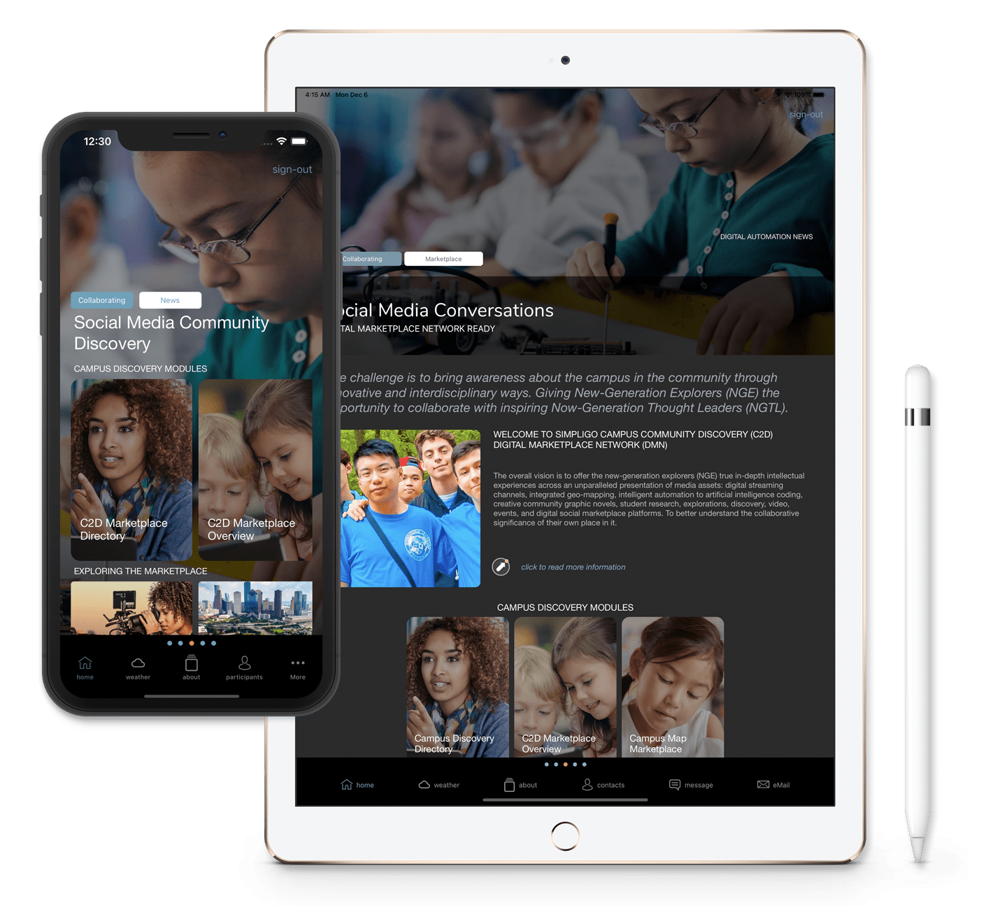 SimpliGO Campus Community Discovery (C2D) Digital Marketplace Network (DMN) has been rapidly gaining importance in the social media community for the past decade. Driven by the idea of igniting the explorer in all of us the C2D DMN seeks to deliver rich creative media assets through groundbreaking storytelling from the best and brightest industry professionals, new-generation explorers (NGE), campus historians, and everyday people in the community.